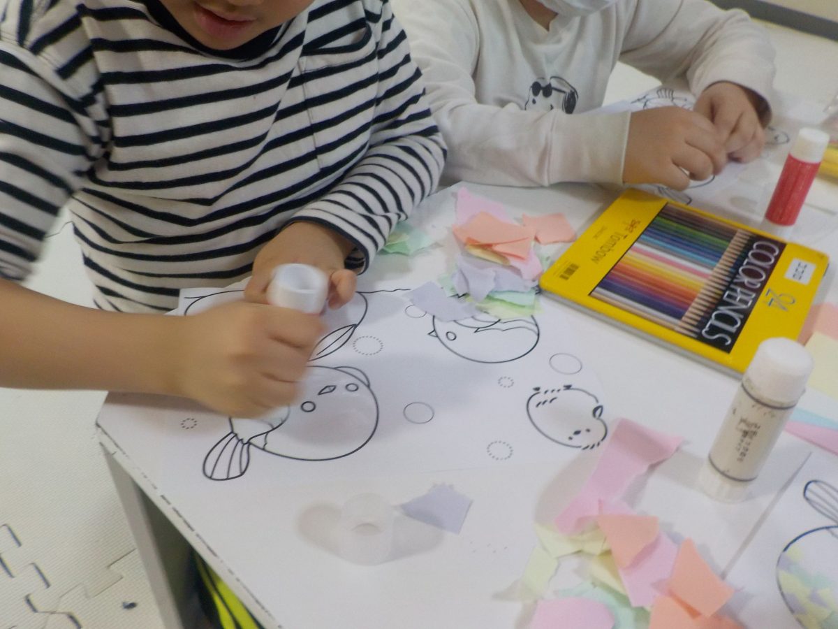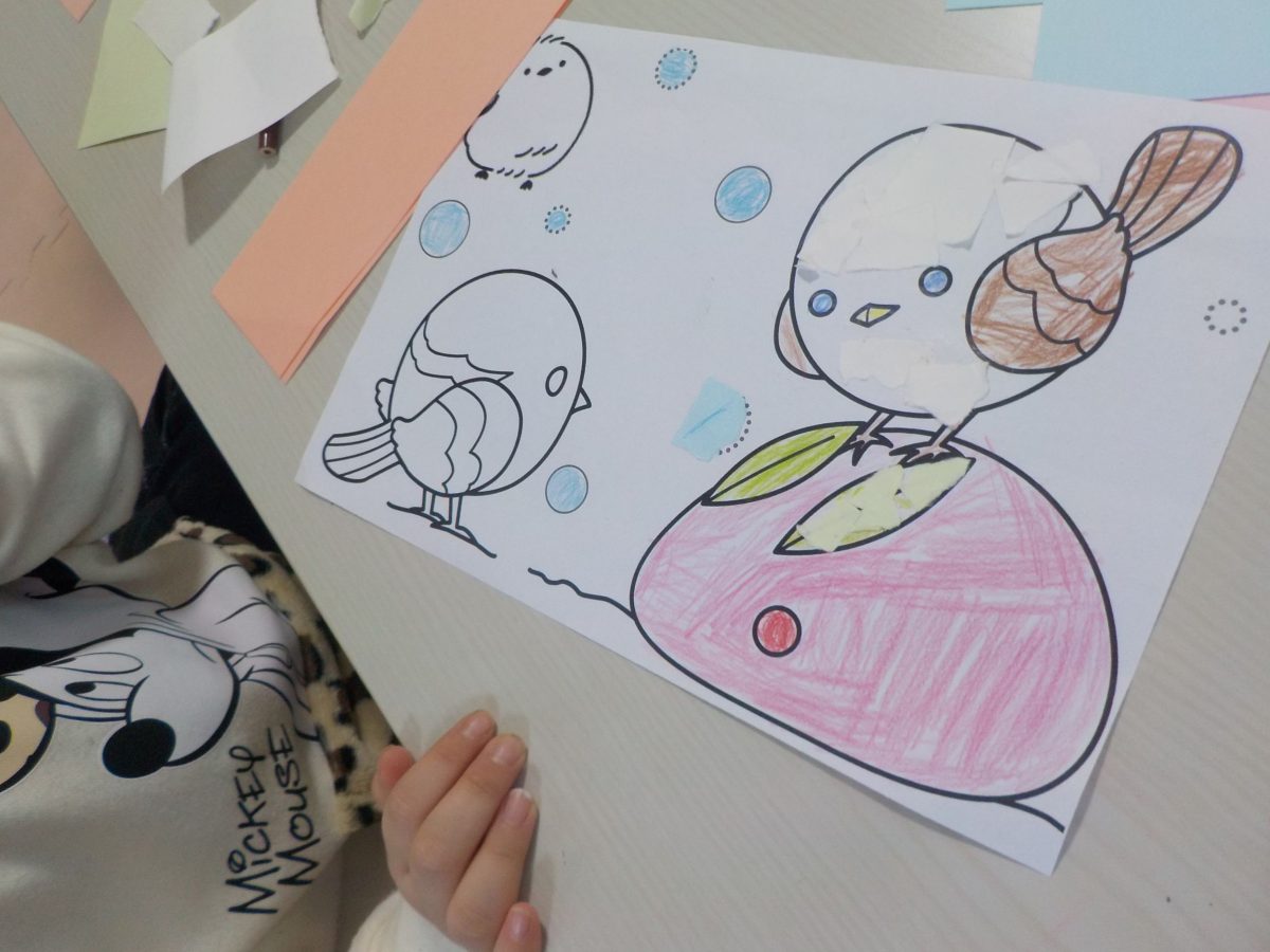 シマエナガの貼り絵も行い、細かい部分も上手に貼れていました🐤😊