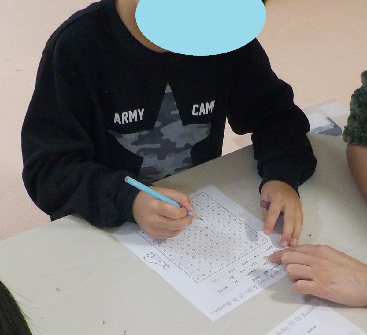 無造作に書かれた平仮名の表の中から、動物などの言葉を見つけていくゲームです😊