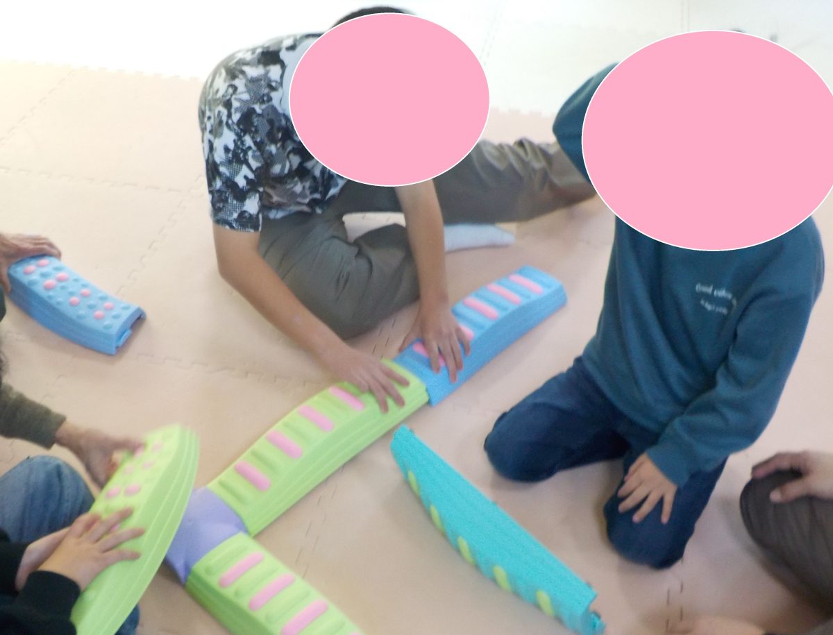 グループごとに話し合いながらバランスボードを組み立てています![]()
