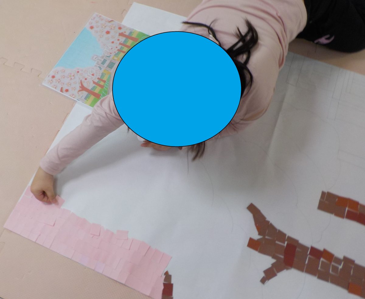 活動は工作で、スノードーム作成と壁面制作でモザイクアートをしました⛄🌸